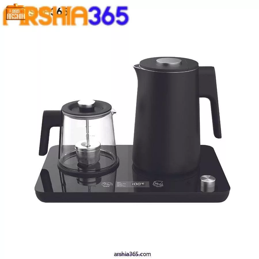 و همچنین قوری پیرکس با ظرفیت 1 لیتری با طراحی فوق العاده زیبا و دارای توری استیل است که جابجایی از روی درب کتری را امکان پذیر میکند.