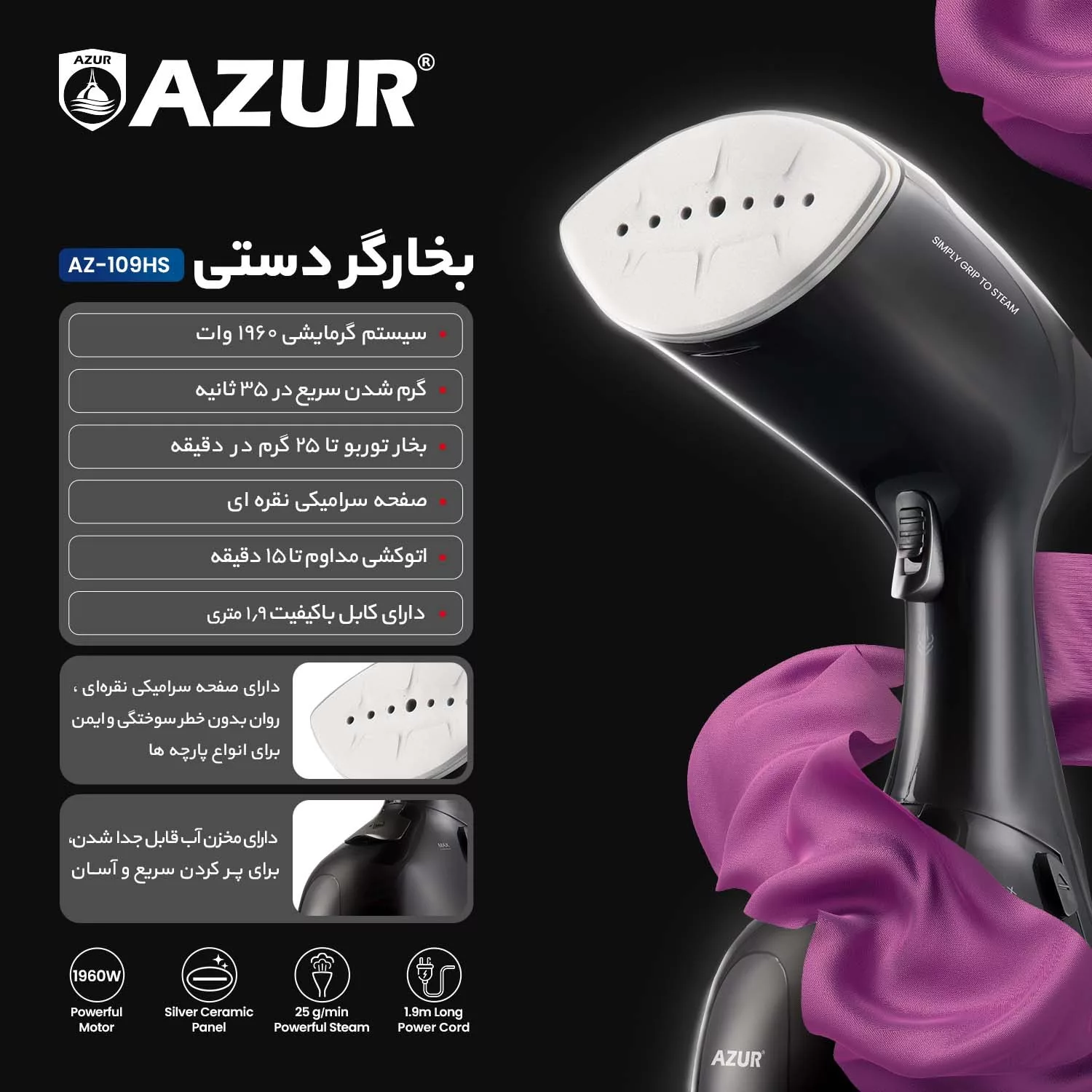 مشخصات اتو بخار دستی آزور مدل AZ-109HS