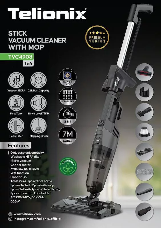 جاروبرقی ایستاده تلیونیکس مدل TVC4908 با ترکیبی از قدرت مکش 18 کیلوپاسکال، فیلتر HEPA قابل شستشو، صدای کم 79 دسی بل و مجموعه ای از لوازم جانبی حرفه ای، گزینه ای کامل برای نظافت منازل می باشد. اگر به دنبال دستگاهی با عملکرد قدرتمند، طول عمر بالا و راحتی استفاده هستید، این مدل می تواند نیازهای شما را به بهترین شکل برآورده سازد. با انتخاب جاروبرقی ایستاده تلیونیکس مدل TVC4908، نه تنها به بهبود کیفیت هوای داخل منزل می پردازید، بلکه زمان و انرژی صرف شده برای نظافت را به طور قابل توجهی کاهش می دهید.